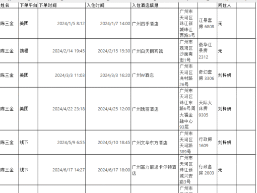无论是线上手机各种平台订的酒店还是线下办理的入住,酒店都会将入住信息记录到日志中,这个是公安要求的,只要是酒店,公安要求必须登记入住信息,这些都可以被我们截取到的。不管他用的是别人的手机号还是别人帮他订的,入住登记都会要求实名制,身份信息是唯一,就可以判定这是他入住情况。当手机链接酒店WiFi时,链接信息会同步到数据库中,此人名下就会又一条wifi记录,根据链接时间和同一房间入住男或女的信息匹配,系统自动判定是否为同住人。最终的结果就是,只要你踏入酒店,提交身份信息或者与酒店任何电子设备有互动,您的入住行为将被记录。